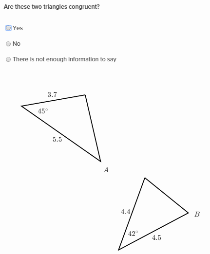 The only triangle in this list marked as having two congruent angles and a side that is not between them congruent is the last figure. Now to complete the proof, we must show that there is at most one point $c$ on the above ray such that. It can be told whether two triangles are. Write a program that reads the three angles and sides of two triangles and print if they are congruent or not. That's my code but there is a problem in the beggining, because i soon as it ends the angles prompt, the program just finishes and says they are not congruent, without ever asking for triangle.
